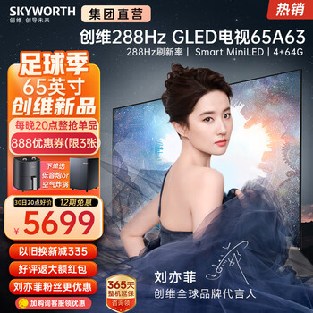 创维电视65英寸 65A63 Mini led电视 游戏 4+64G 288HZ 以旧换新 护眼活动到手价格5699元【现在的价】 !