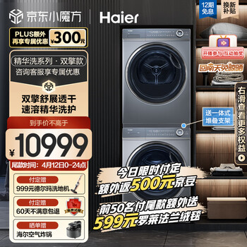 海尔(Haier)平嵌洗烘套装 10Kg精华洗滚筒洗衣机全自动+双擎热泵烘干机家用 光等离子除菌 纤美176XS套装活动到手价格11999元【现在的价】 !