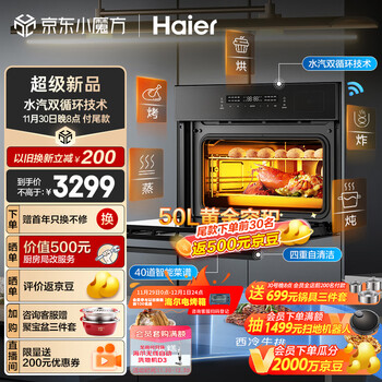 海尔(Haier)嵌入式蒸烤箱 蒸烤一体机 50L蒸烤烘炸炖五合一 温湿精控 余水单独回收 搪瓷内胆自清洁C50-TAU1到手价格不高于3299元
